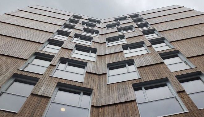 Fertigteil-Fassaden aus Holz dämmen nicht nur, sondern können auch mit einer Holzverkleidung sehr gut aussehen. Foto: Pro Holz Austria