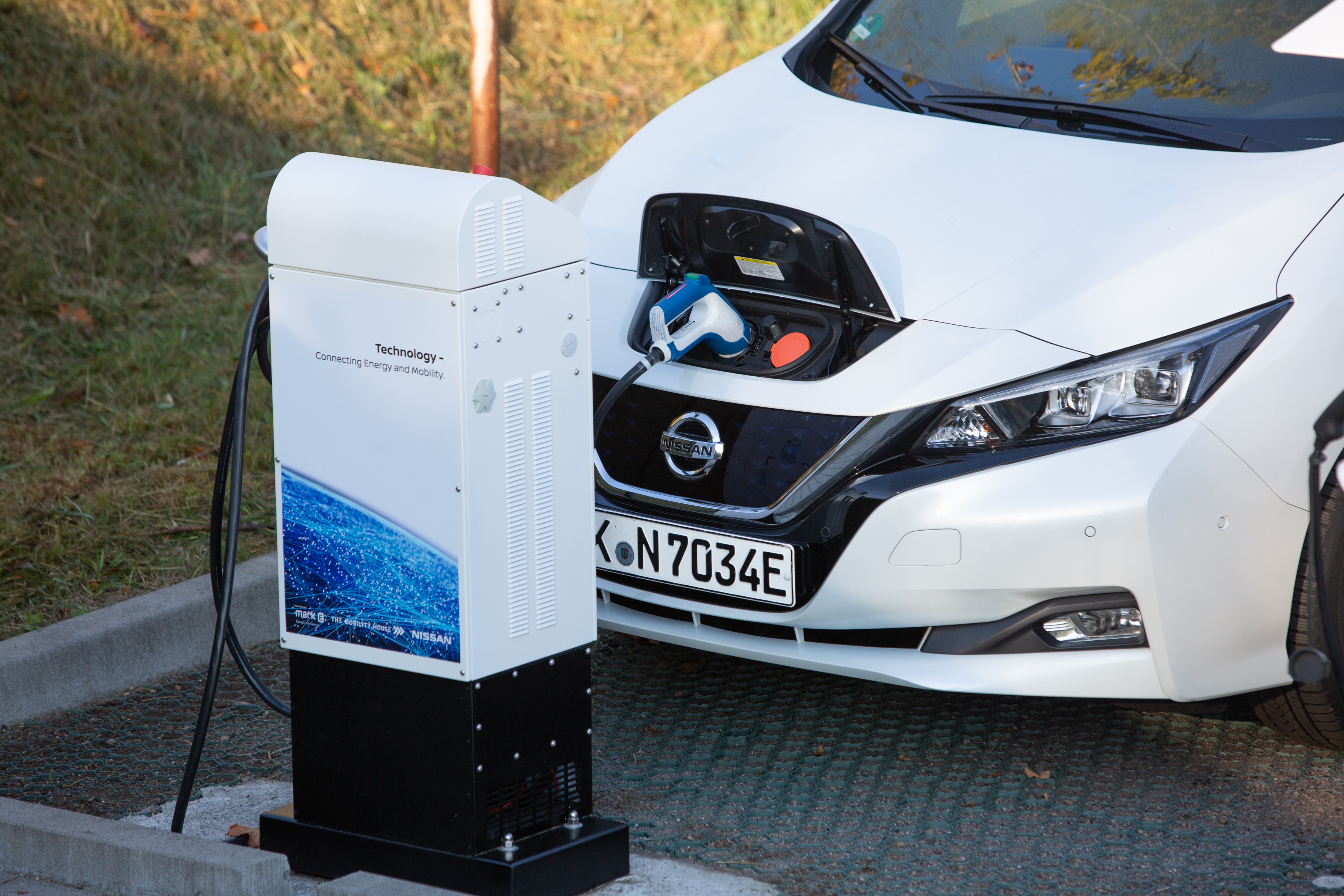 Der Nissan Leaf ist das erste Elektroauto, das bei Bedarf Strom als Primärregelleistung wieder ins Stromnetz einspeisen darf. (Foto: The Mobility House GmbH)